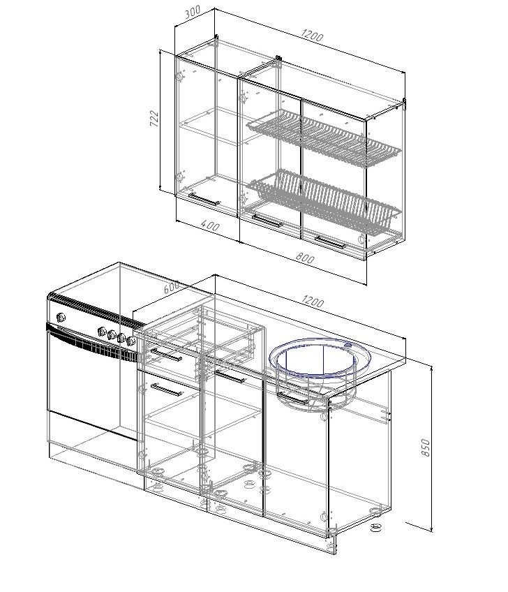 Фасады верхних модулей со свесом 12 мм дают возможность использовать без установки ручек.